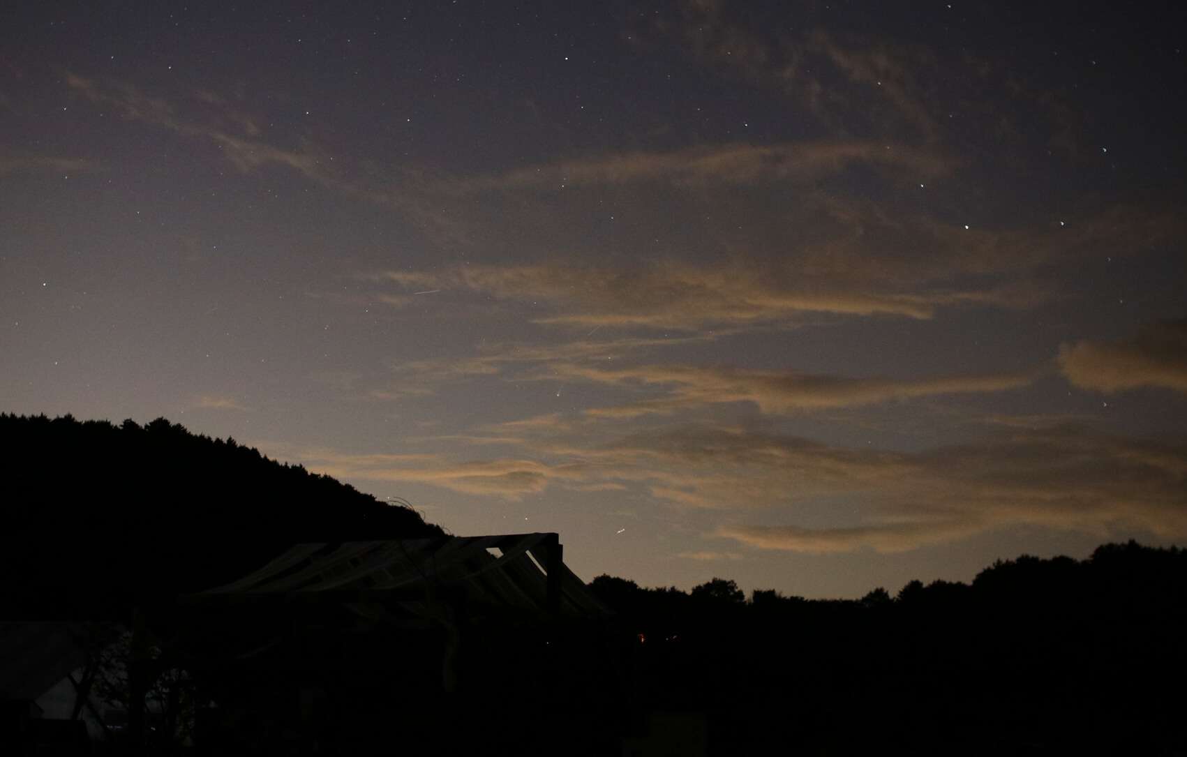 先ほどの場所から少し先の観望地に到着するとほぼベタ曇りで、西の空にわずかに雲の隙間があり、双眼鏡で見るとアークトゥールスがちょうど見えていました。しかし、もしかするとわずかな隙間でワンチャンあるかも!