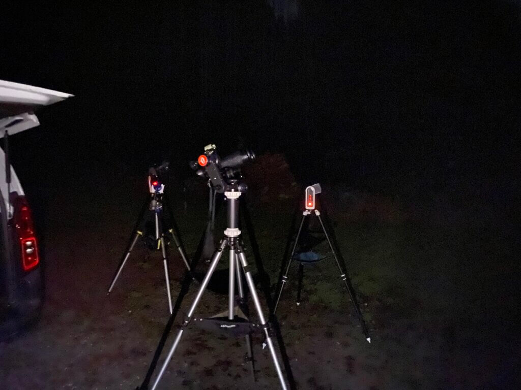 右からSeeStar S30、ZERO経緯台に載ったニコン15倍70㎜双眼鏡、ポラリエに載せたキャノンEOS80D+135㎜です。