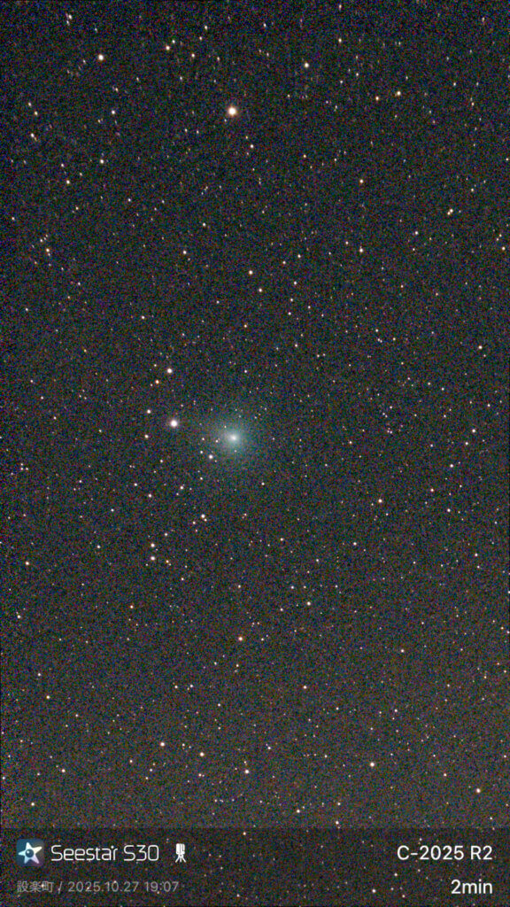 まずはSeeStar S30を起動し、レモン彗星を導入しつつ双眼鏡で探します。