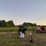 そしたら前回ここで月を見て望遠鏡が欲しくなったので買ったのだが、使い方がわからなくて教えて欲しいというご家族がいらっしゃいました。持ってきているとのことでしたので、組み立てて一緒に使ってみることにしました。望遠鏡はスコープテックのラプトル50でした。