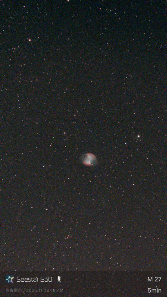 SeeStar S30を片付ける前に亜鈴状星雲M27を撮っておきましたので最後に貼っておきます。