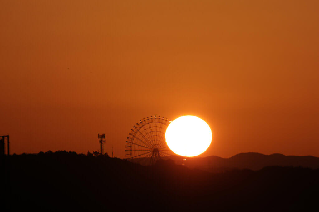 この時にわかったのは11月7日 6時19分の日の出が方位角109.4度で太陽がこの大観覧車に重なるであろうということでした。