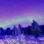 星が見え始めた空全体にオーロラが現れ、動いていく雲の上をウネウネとオーロラがうごめいています。この動画の元の写真はこちらです。