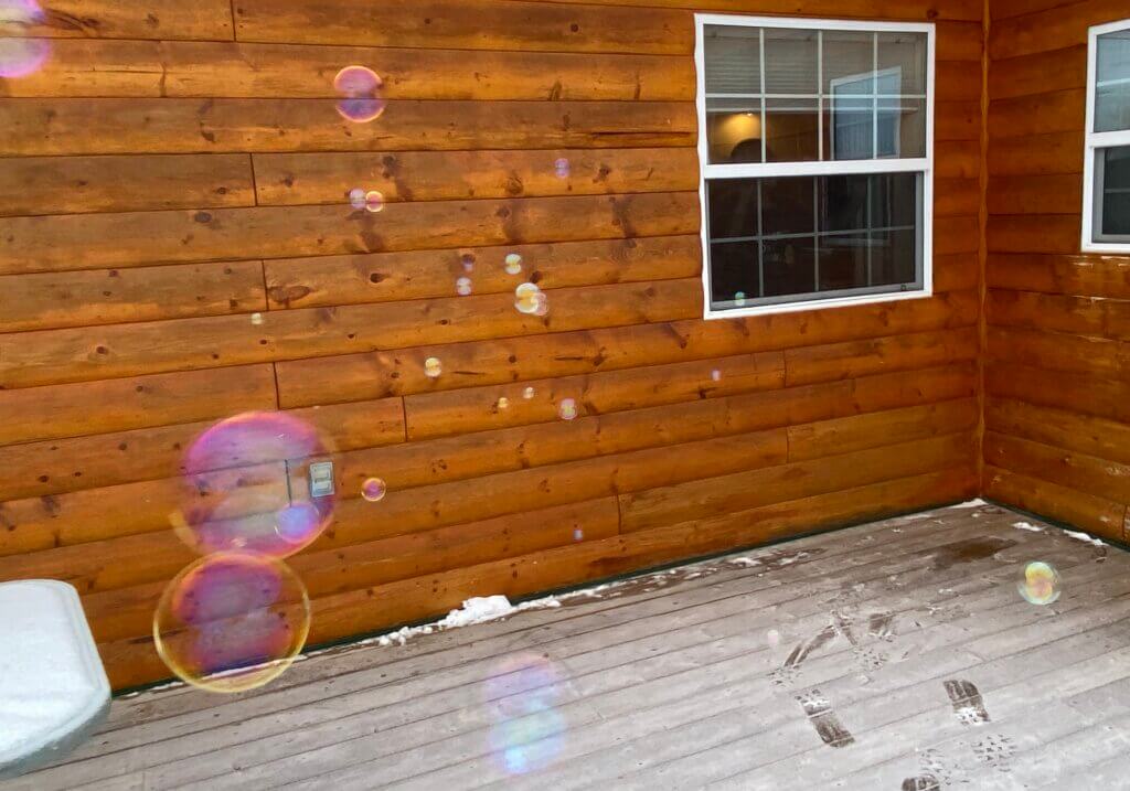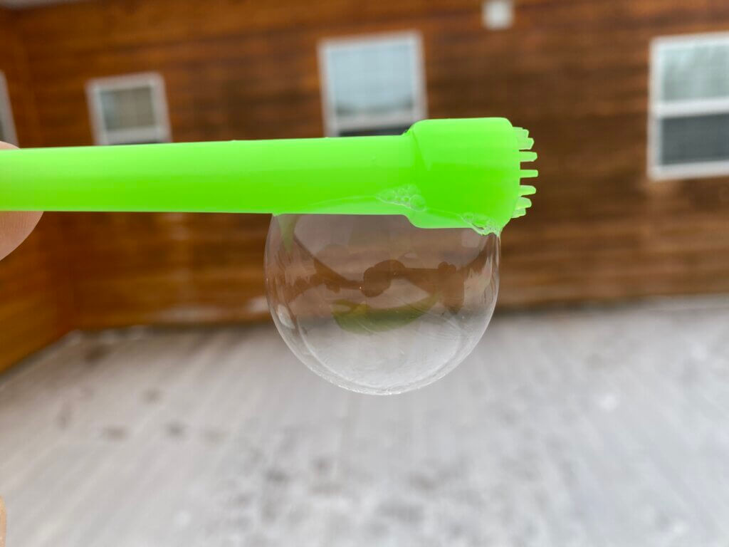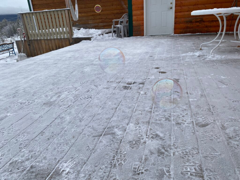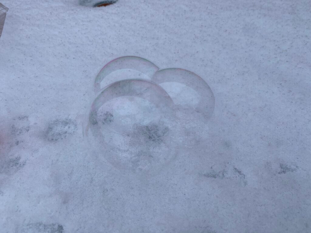 そして私は気温は氷点下10度とそれほど低くはないが、シャボン玉遊び。