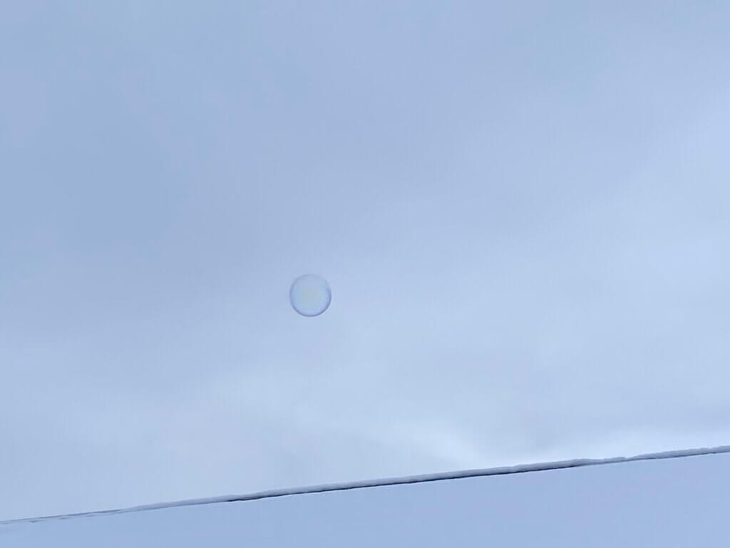 雪の上に落ちたものは凍ってきていました。その後くしゃくしゃのラップのようになっていました。これが見られればダイソーで買って遥々持ってきた甲斐がありました。