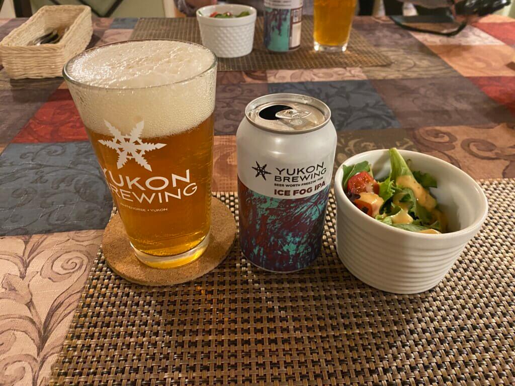 まずは今まで飲んだ3種類の中で一番おいしかった地ビール「ICE FOG IPA」で乾杯!