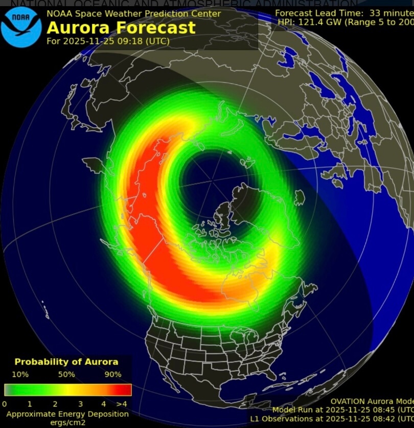 米国シンシナティ在住の気ままに星空観望仲間Mさんからこんな画像が届き、今朝のオーロラがかなり強かったことが確認できた。