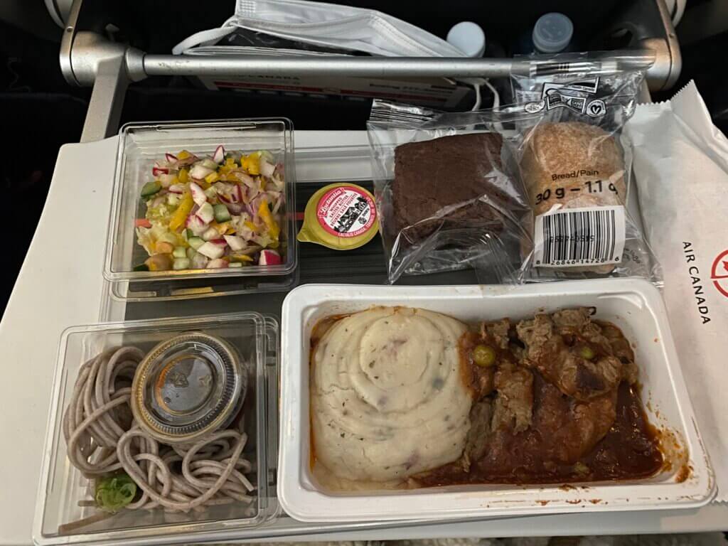 「ビーフオアチキン」隣の席の御大Wさんがビーフと言ったので私もビーフにした。行きの便も蕎麦がついていたな~。日本人を意識しているのかなぁ~。