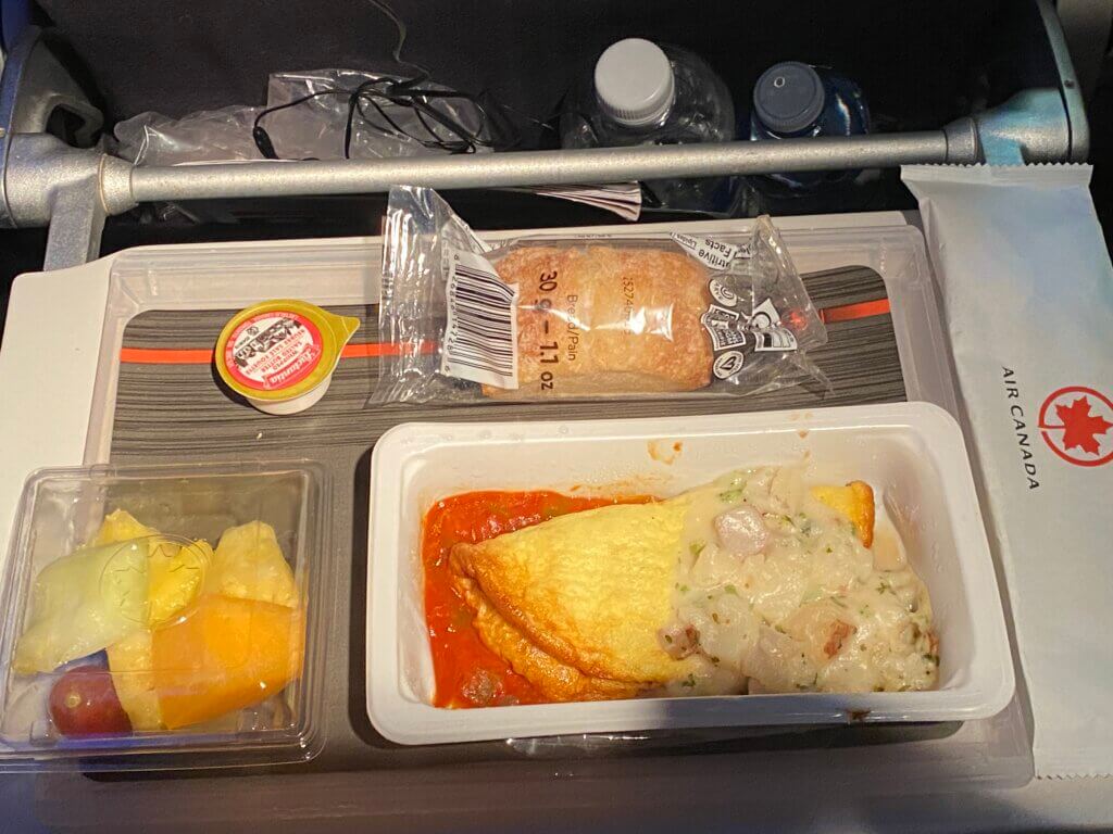 これはたぶん朝食になるのでしょう!オムレツとフルーツとパン、これにコーヒーでした。