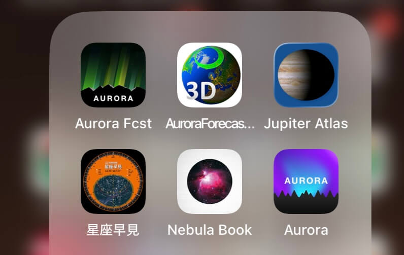 右下の「AURORA」というアプリが現地でカレイドロッジのスタッフの方も使っていて、オーロラが近付いてくるのが表示され信頼性が高そうでした。