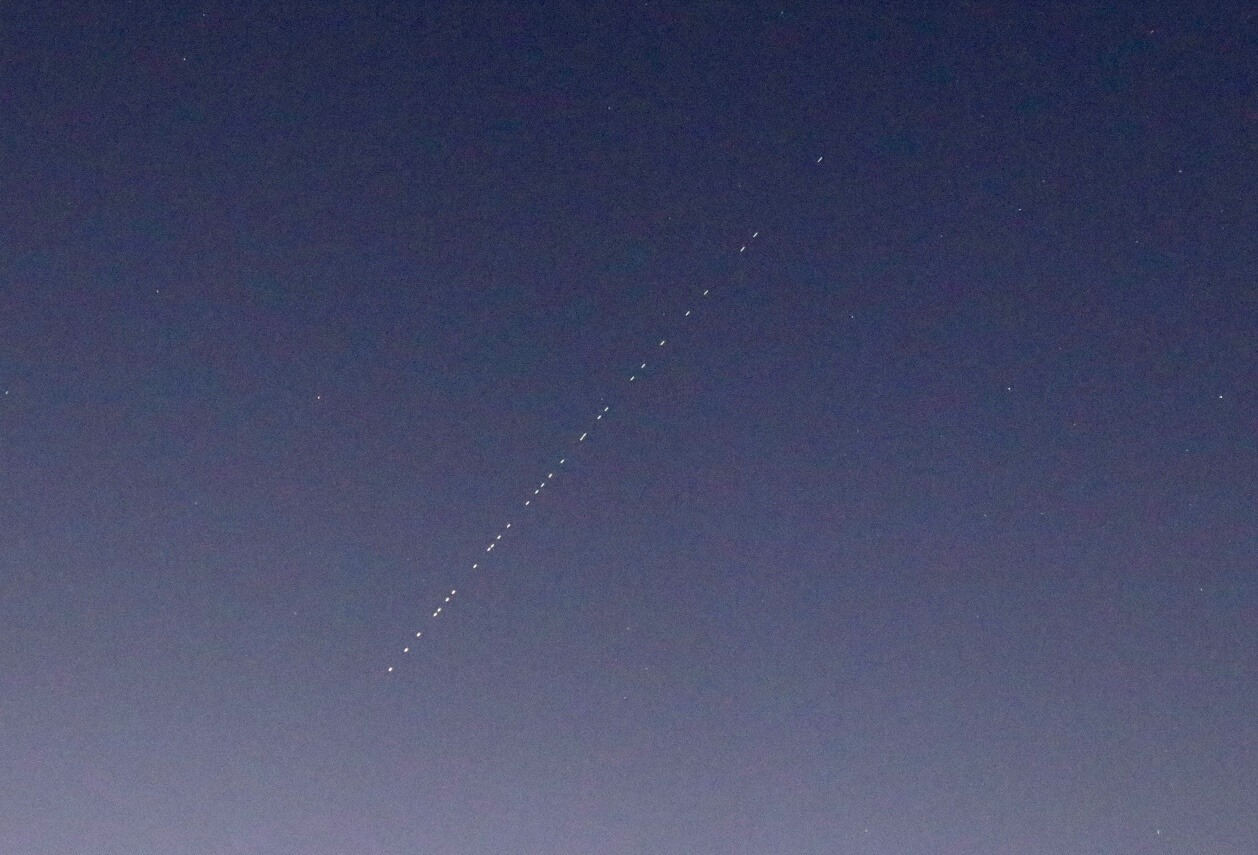 何か仕様が変わってたまたまフレアのように太陽光を良く反射したのかわかりませんが、久しぶりに極めて明るく光る銀河鉄道を見ました。